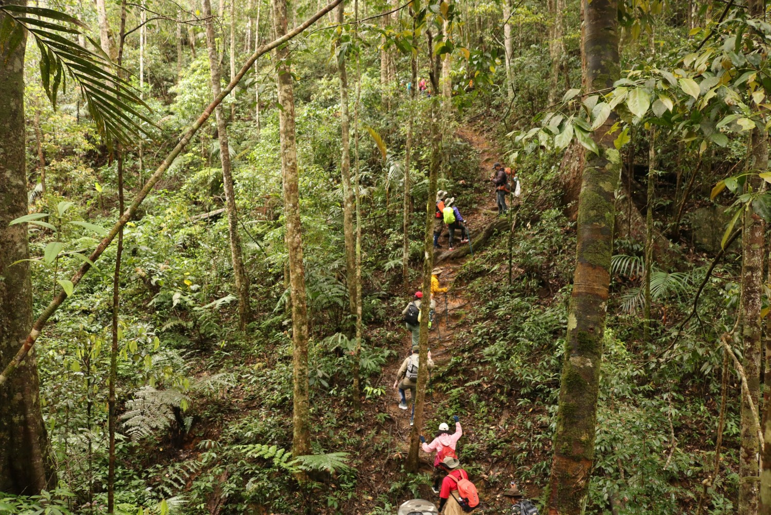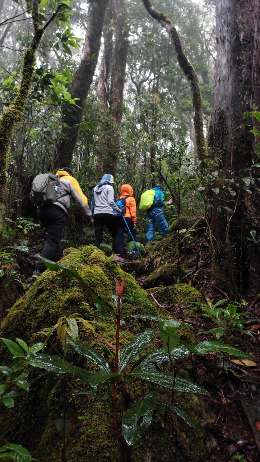Càng lên cao khí hậu lạnh và ẩm ướt hơn hẳn, đường cũng bắt đầu ướt sình do sương mù đọng trên lá cây gió thổi làm sương rơi xuống như mưa. Nhưng bù lại do ẩm ướt nên hệ động thực vật ở đây rất phong phú. Những mảng rêu bám trên thân cây làm cho khu rừng càng thêm rêu phong cổ kính,