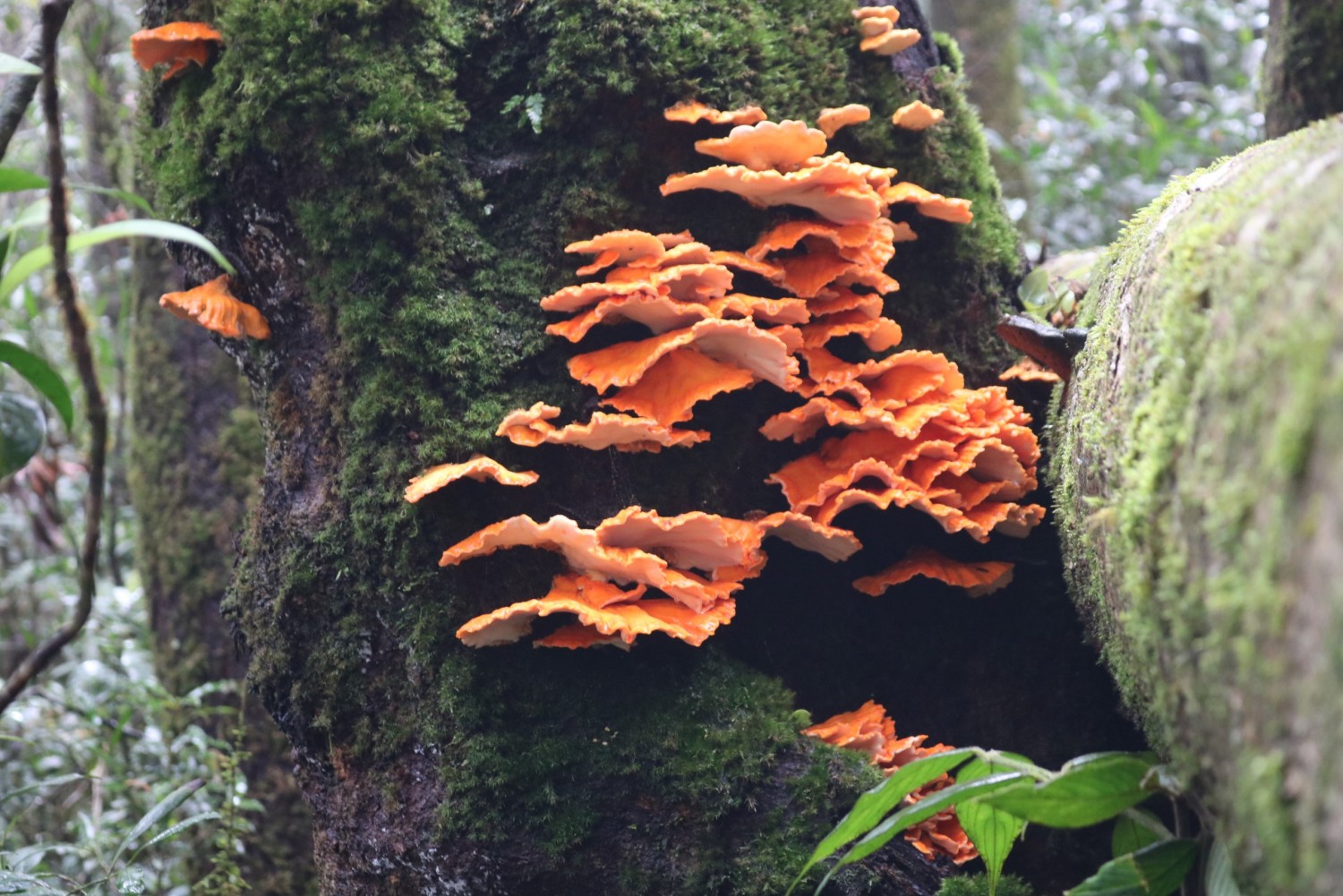 Trên đường đi không khó để bắt gặp những loài nấm lạ, những mảng rêu phong bám trên những thân cây.