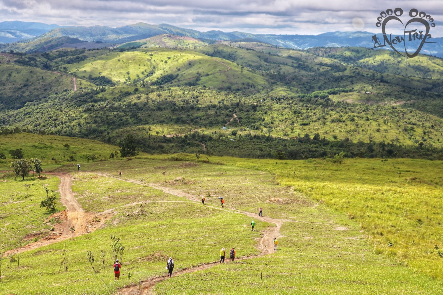 Tour Trekking Thảo Nguyên Du Mục, xuất phát từ Buôn Chăm, EA Sol, huyện EA H'Leo tỉnh Dak Lak băng qua khu rừng khộp lên những đồi cỏ bạt ngàn trên độ cao hơn 900m, xa xa là những cánh đồng điện gió của EA H'Leo.